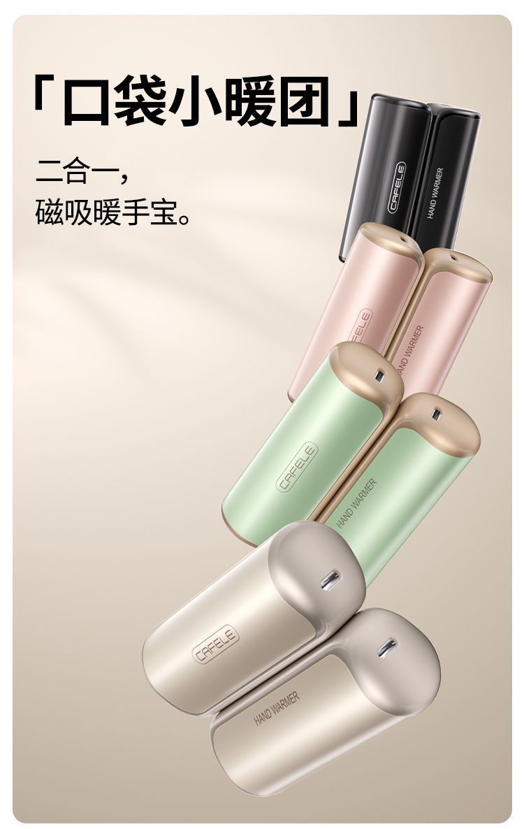 卡斐乐磁吸暖手宝充电款二合一分体式暖宝宝随身便携冬天手握取暖