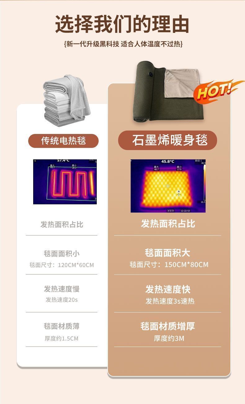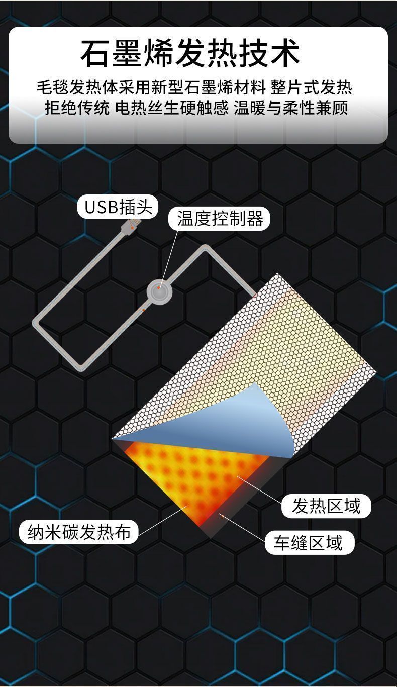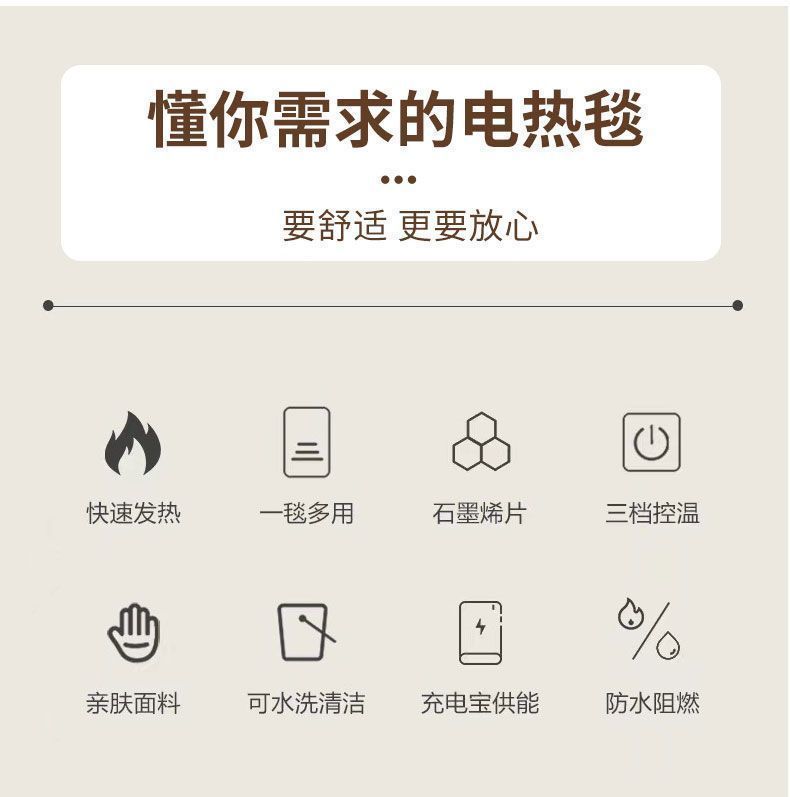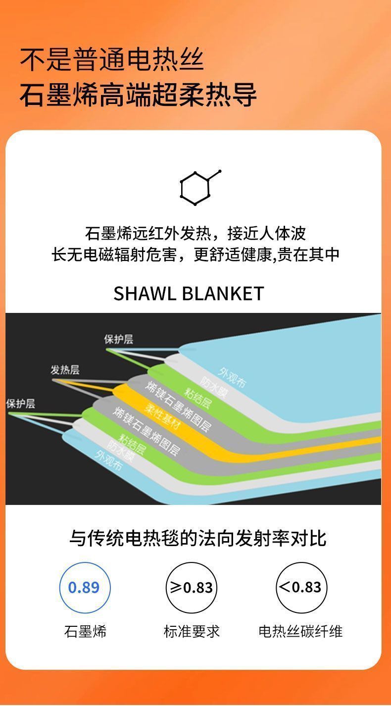 石墨烯电热发热披肩毯USB加热可水洗盖腿家用办公室户外暖身毯子