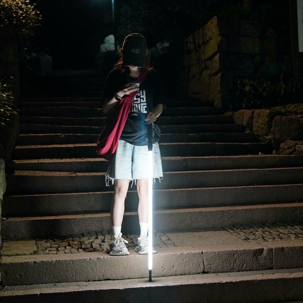发光登山杖专业夜爬装备手杖超轻照明徒步出行便捷登山伸缩