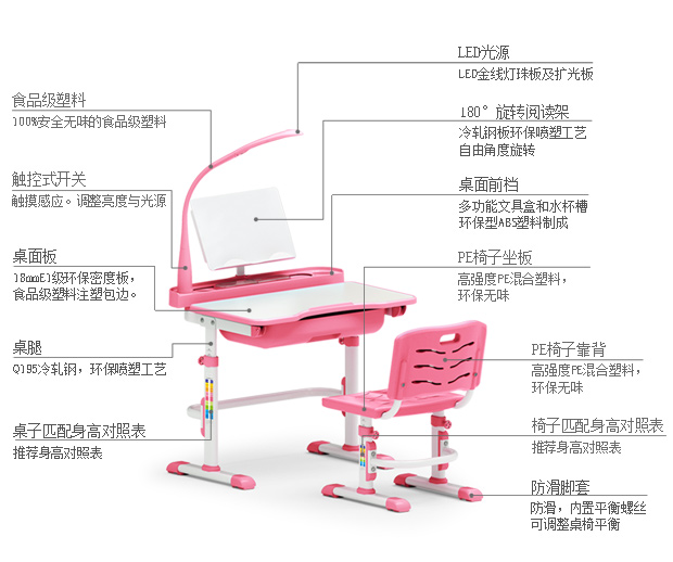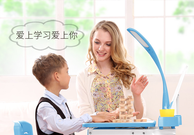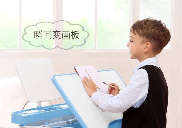 好学童 儿童学习桌儿童书桌可升降小学生写字桌学习桌椅组合套装 校园版蓝色 阅读架