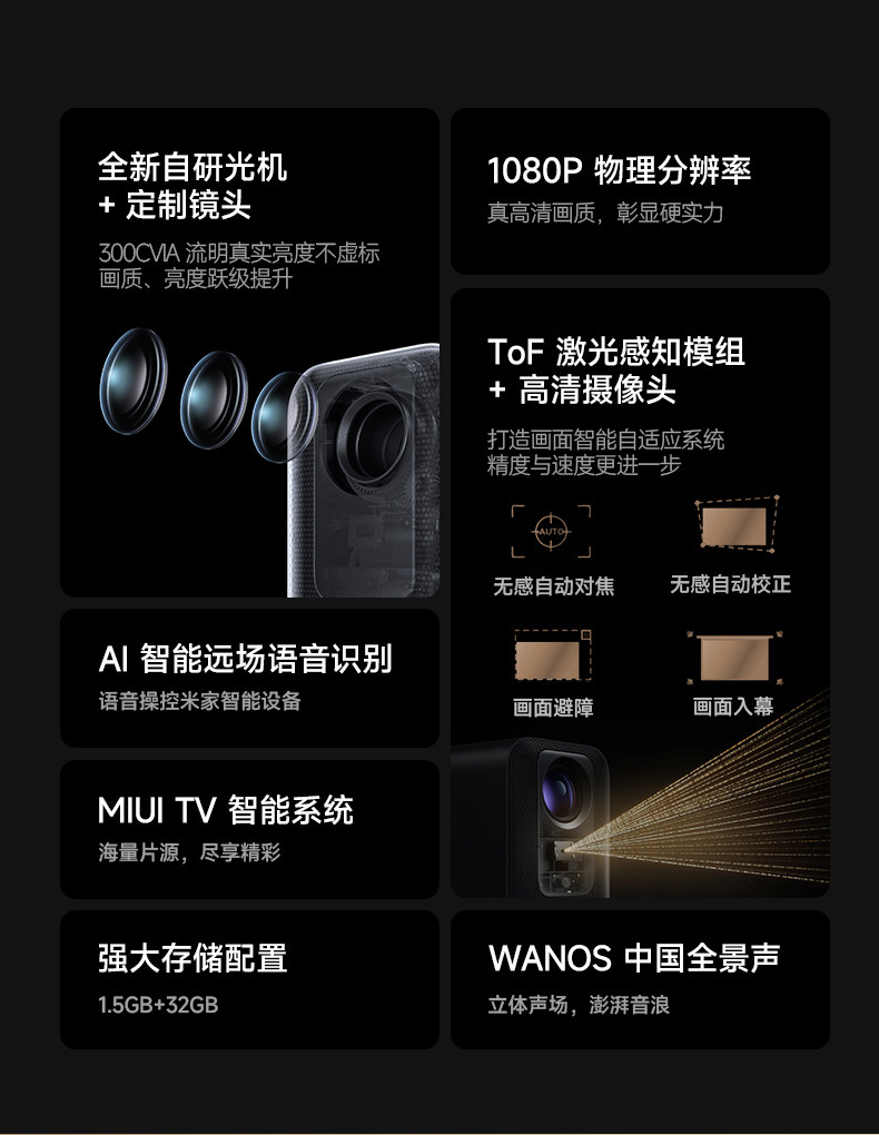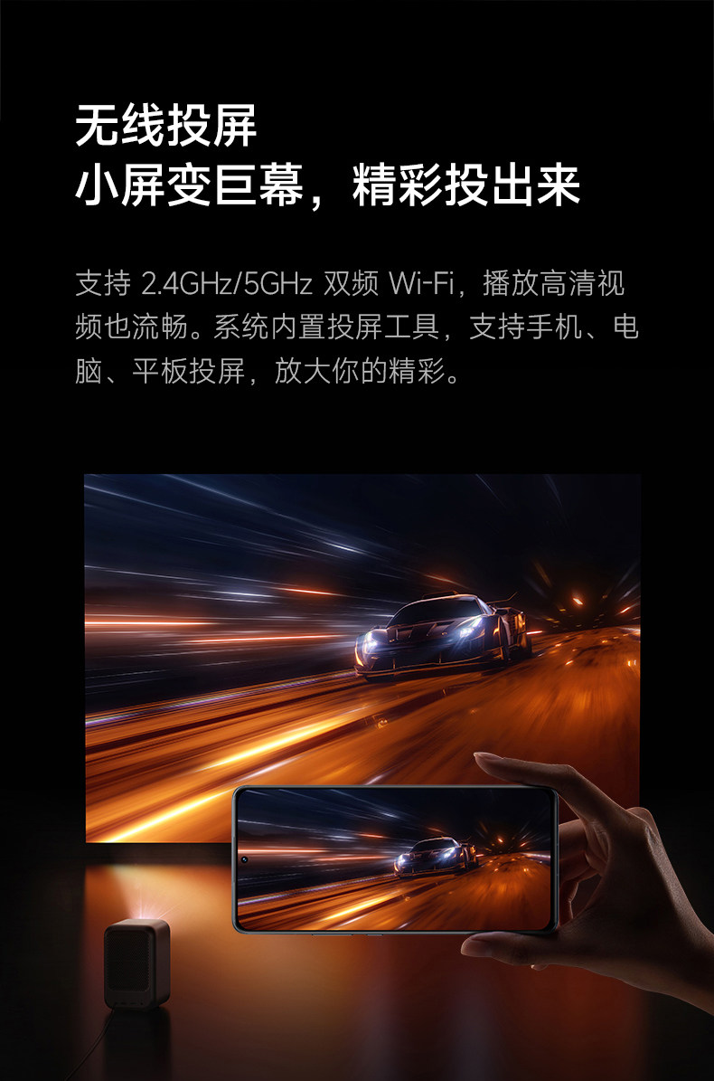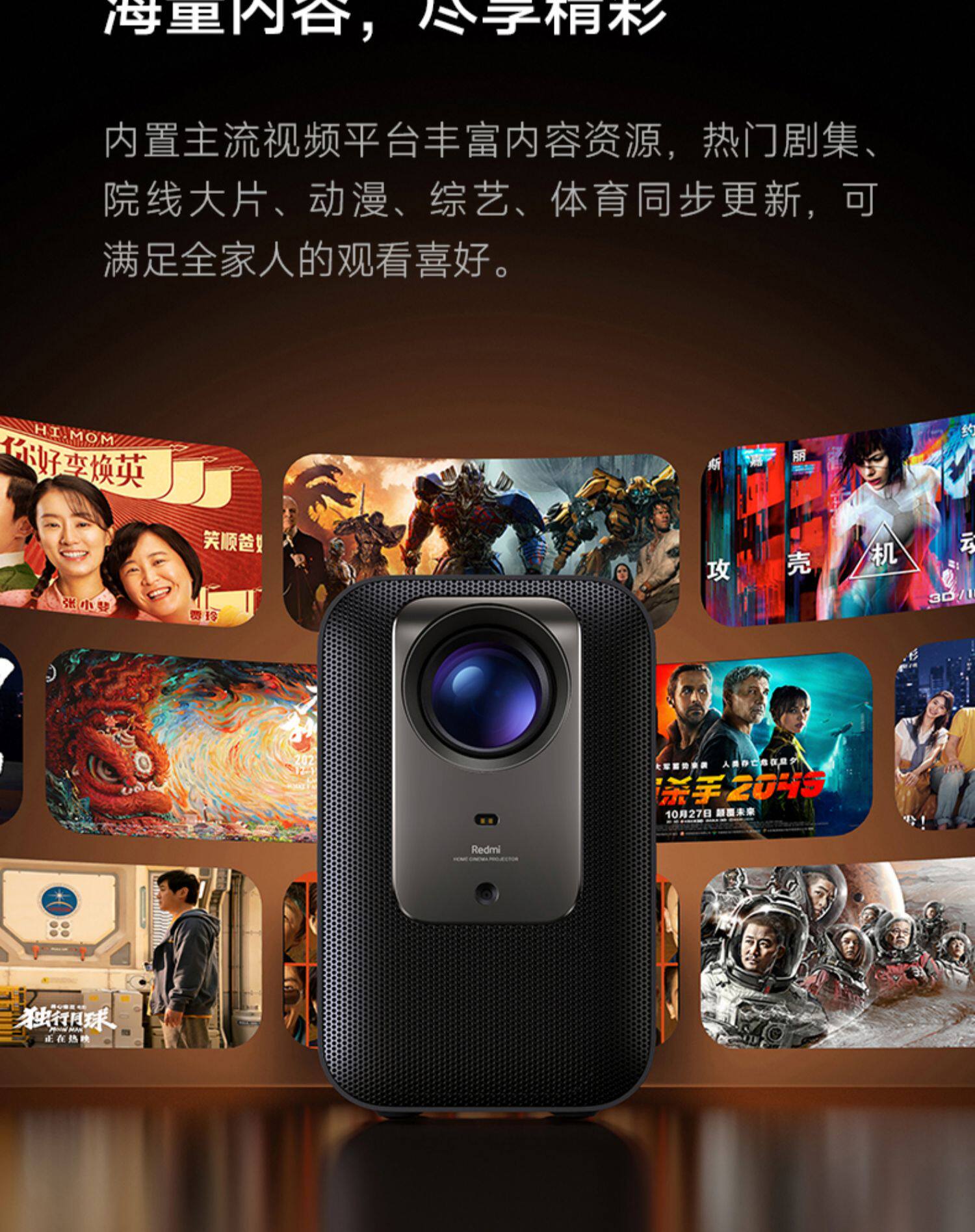 小米Redmi投影仪2Pro家用超高清投影机卧室小型海外版国际全球版可用智能便携式手机