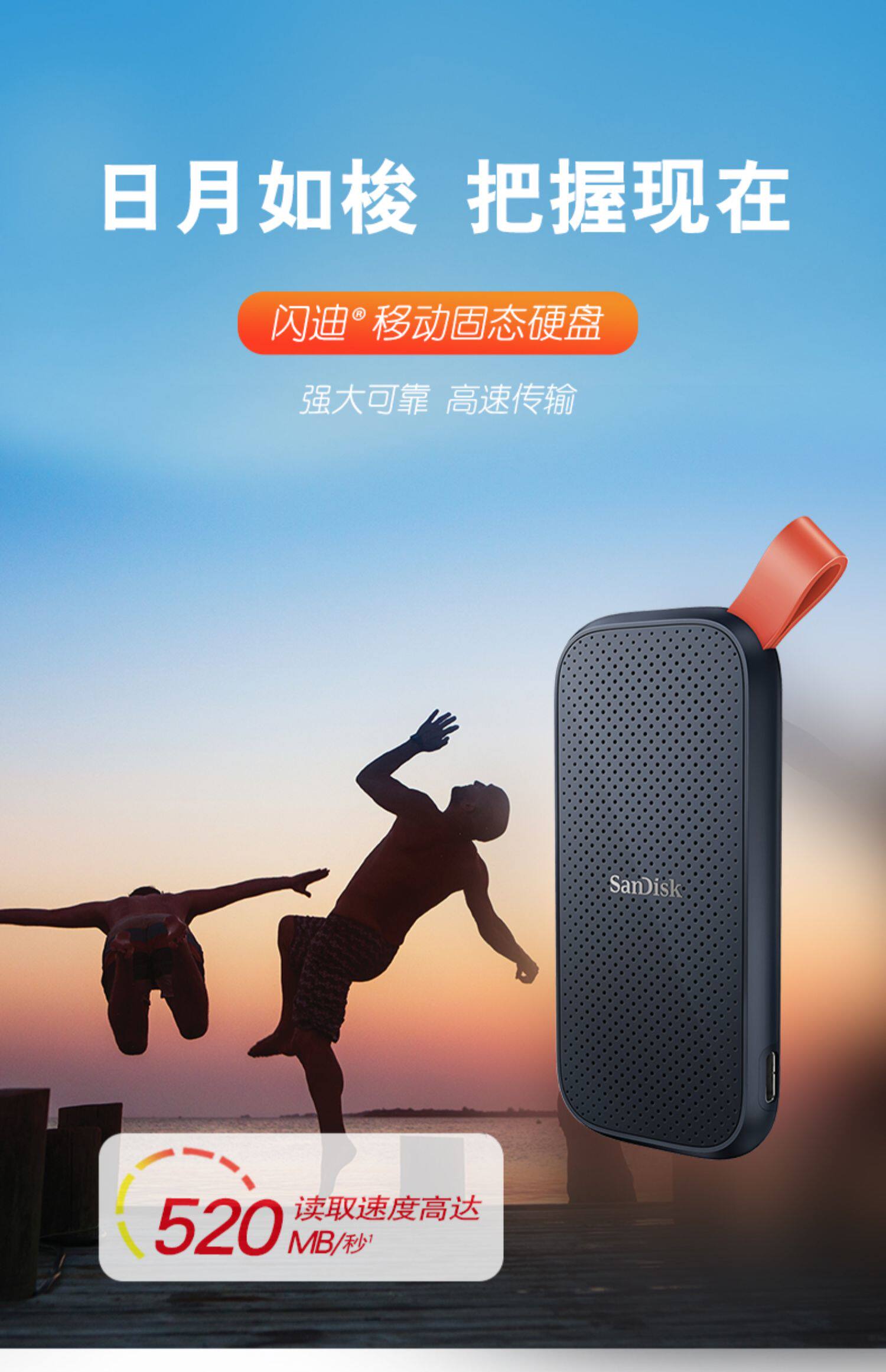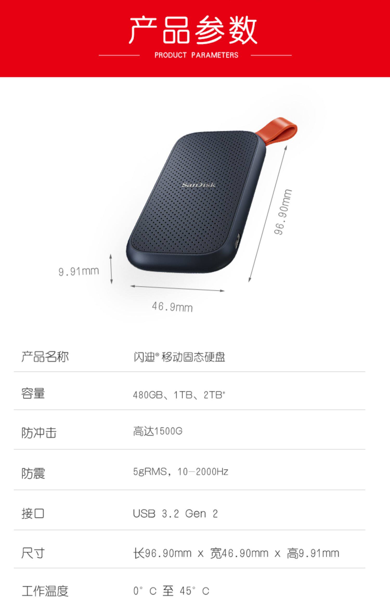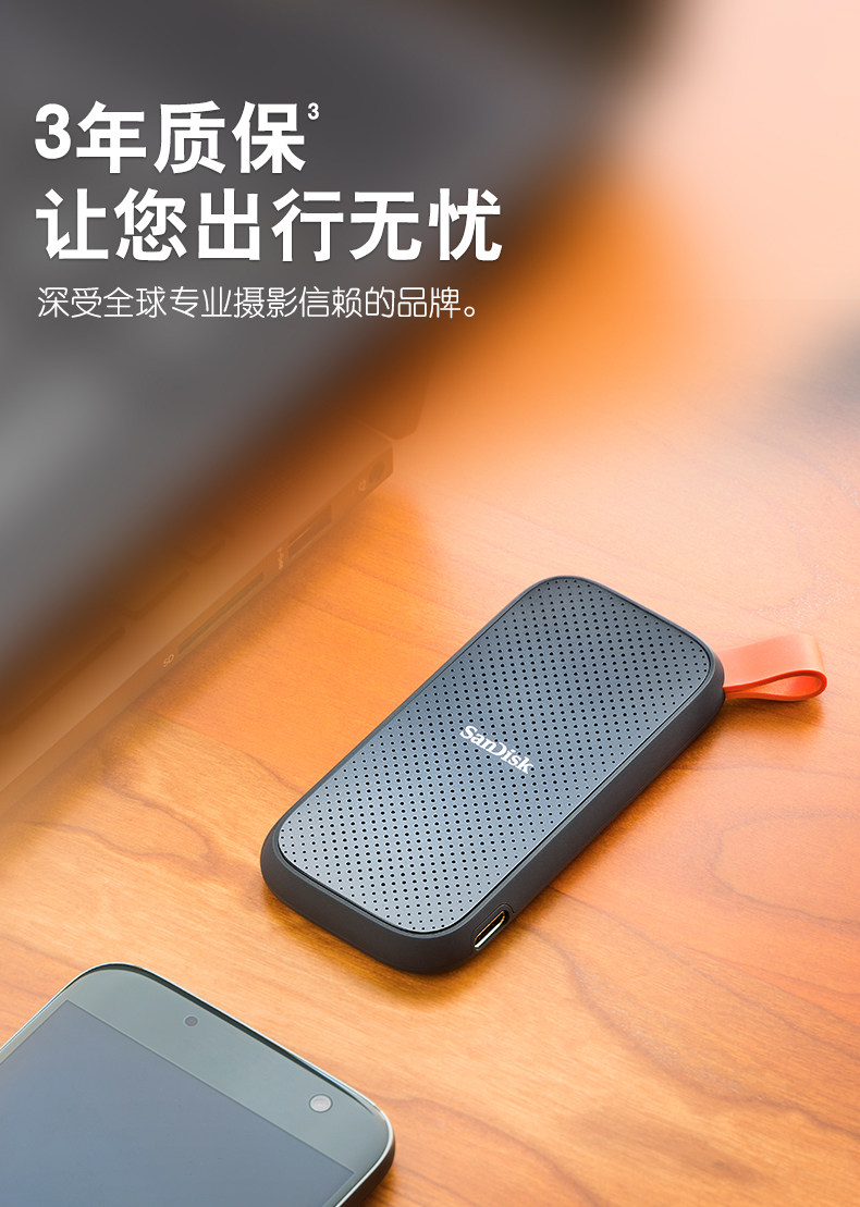 闪迪(SanDisk)1TB Type-c USB3.2 移动固态硬盘(PSSD)E30高速 移动ssd 传输速度520MB/s轻薄便携 2米防摔
