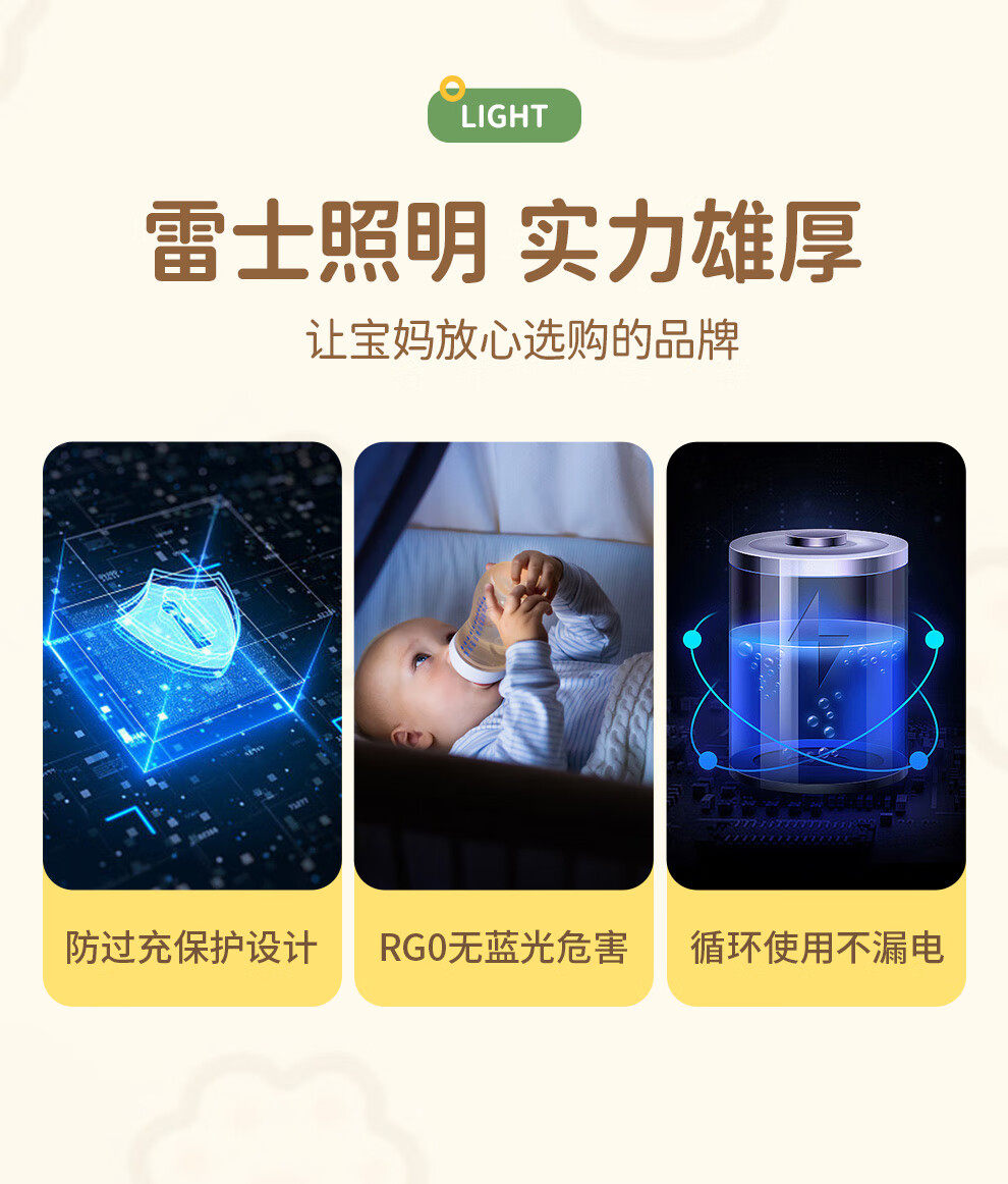 雷士(NVC)氛围小夜灯遥控婴儿喂奶灯儿童卧室起夜充电床头灯生
