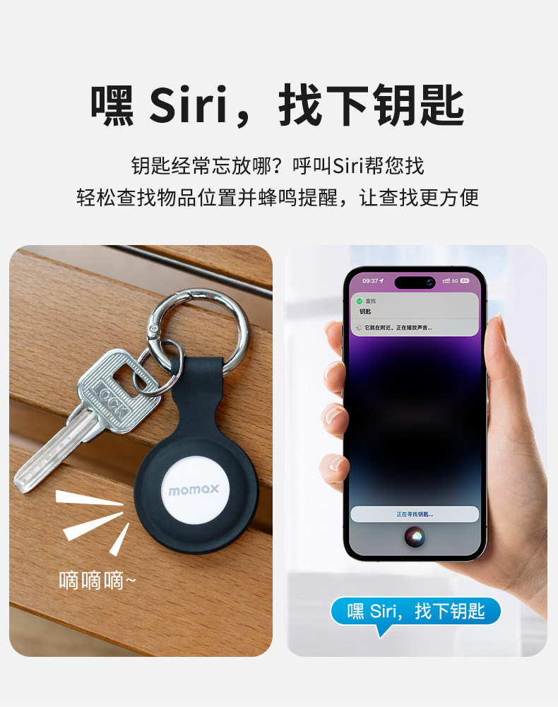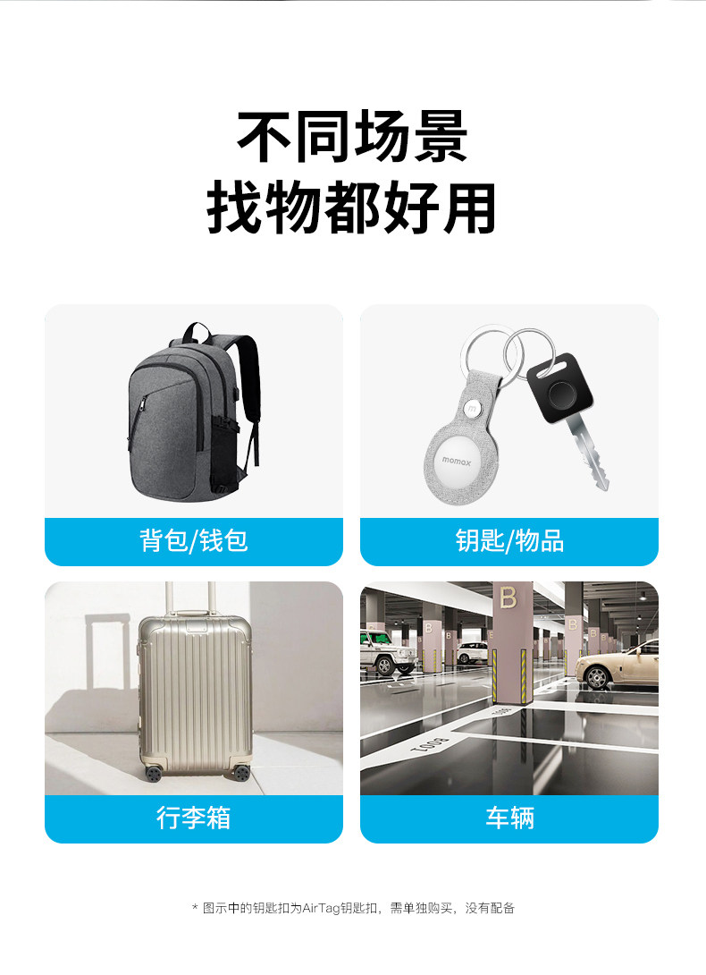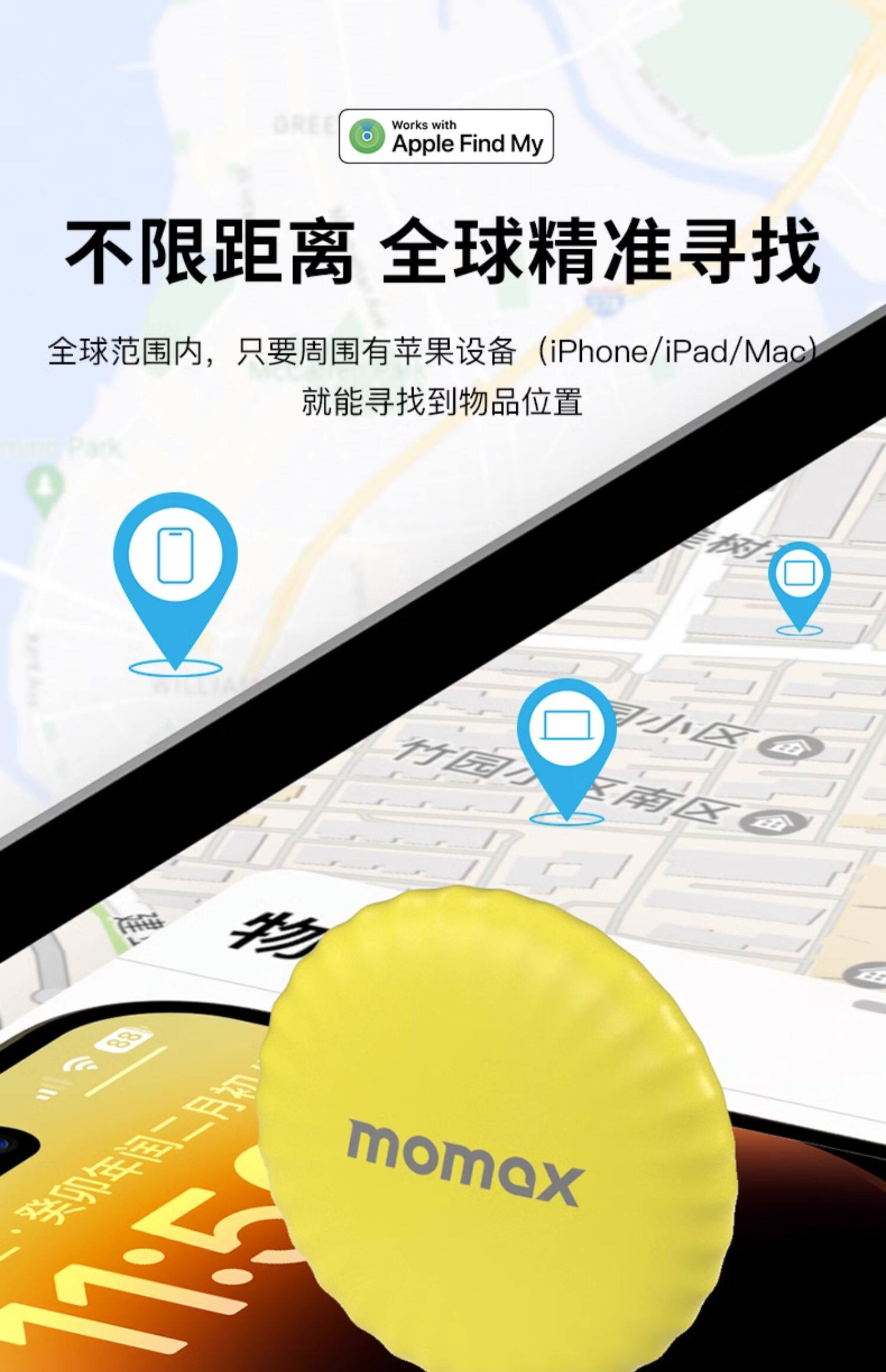 MOMAX摩米士适用apple苹果airtag防丢器全球精准定位背钱包车钥匙扣平替提醒
