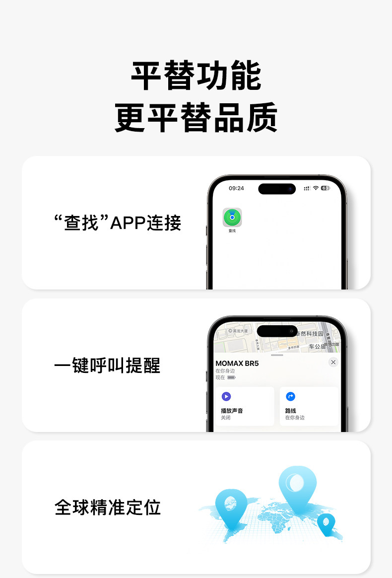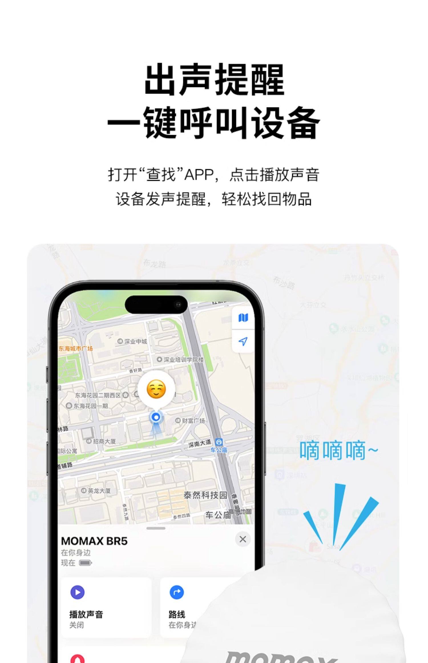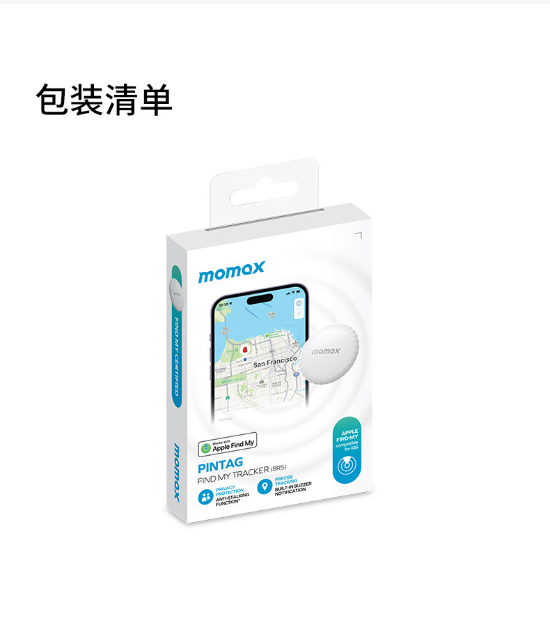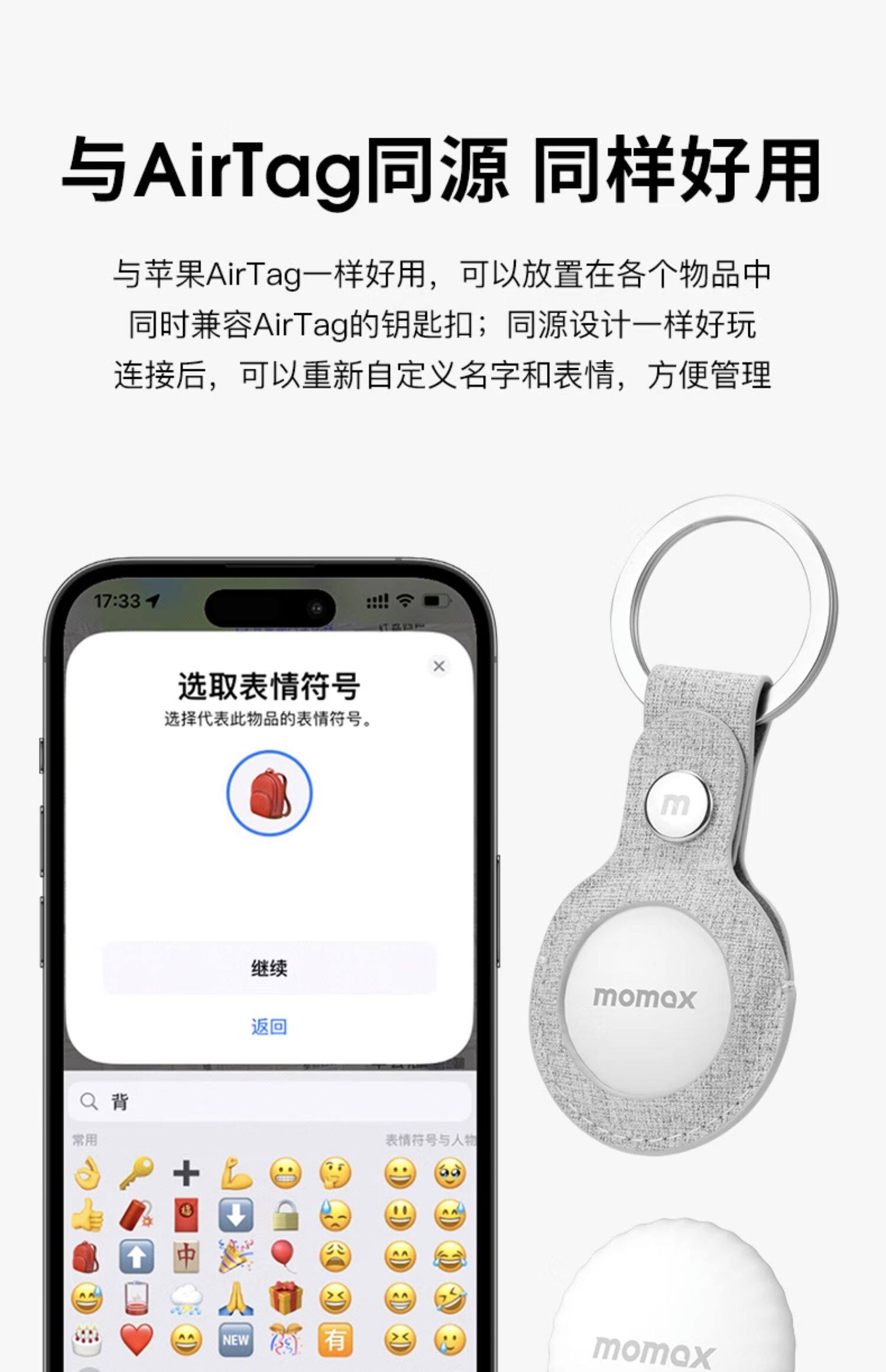 MOMAX摩米士适用apple苹果airtag防丢器全球精准定位背钱包车钥匙扣平替提醒