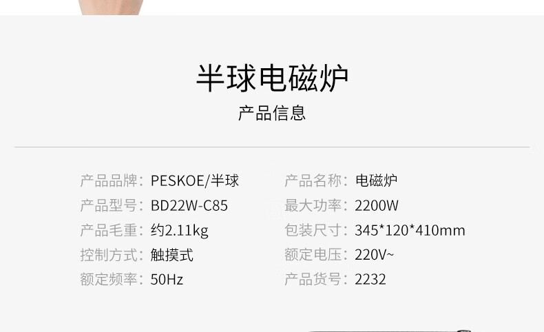 半球(PESKOE) 电磁炉 触控微晶面板多功能家用智能电磁炉 大功率爆炒炉灶大火