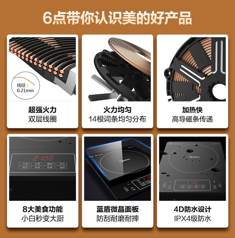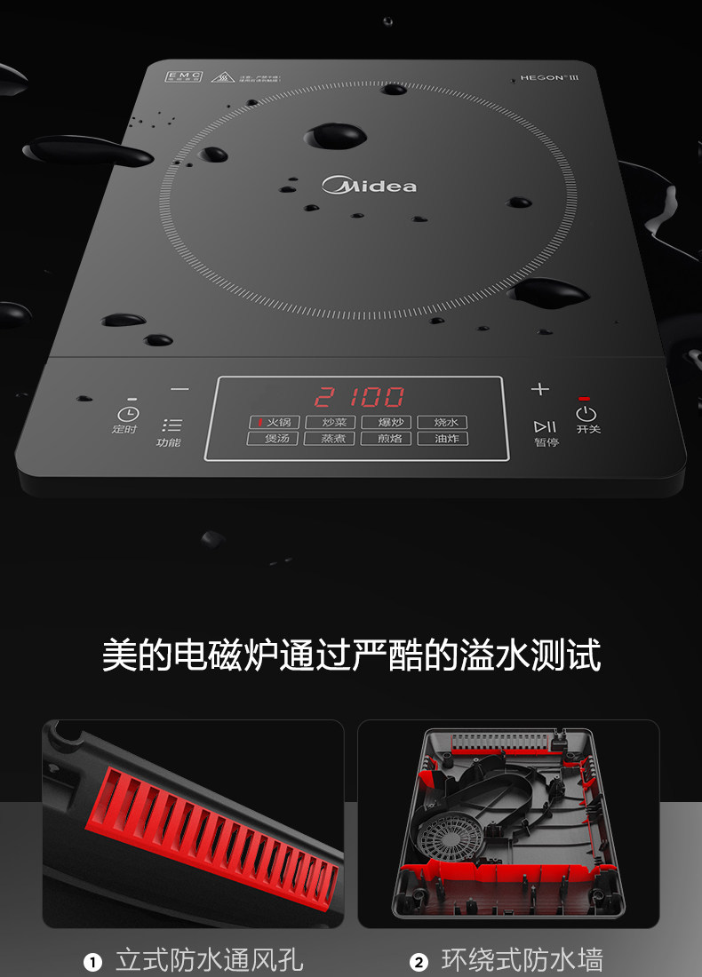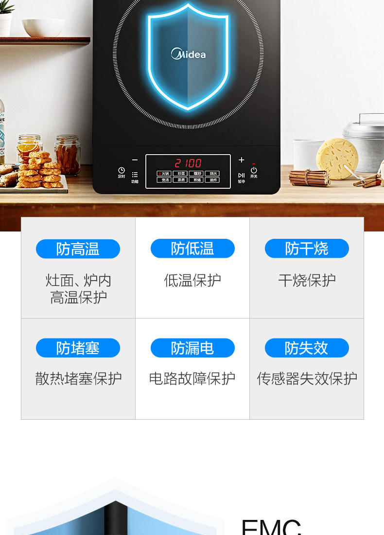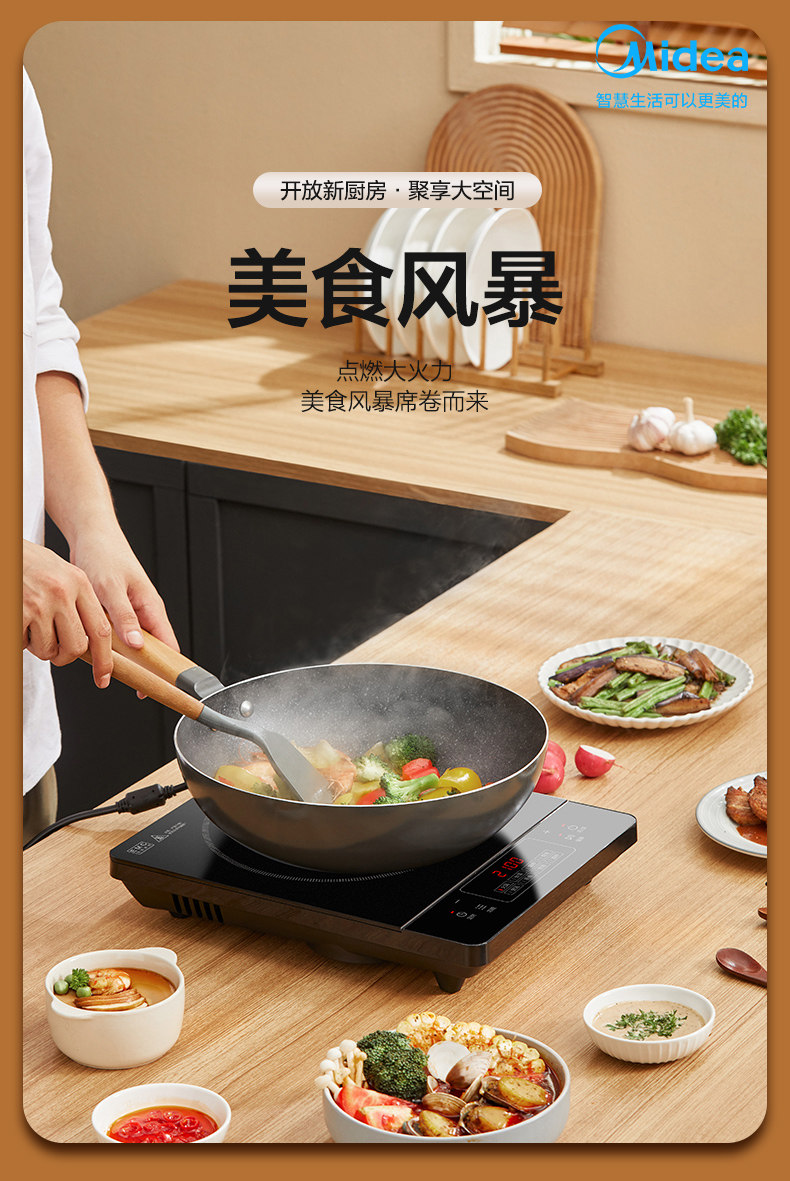 Midea/美的 RT22E01电磁炉黑晶面板灶炒菜家用智能定时多功能单机